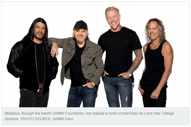 The Metallica Scholars Initiative, created by the band’s nonprofit All Within My Hands Foundation (AWMH), and footwear and apparel firm Wolverine (NYSE: WWW) have donated $100,000 in scholarships to Lone Star College (LSC) students pursuing traditional trades and other applied learning careers. The donation, which Wolverine supplemented with free boots and other items, has provided direct funding to 120 LSC students.”