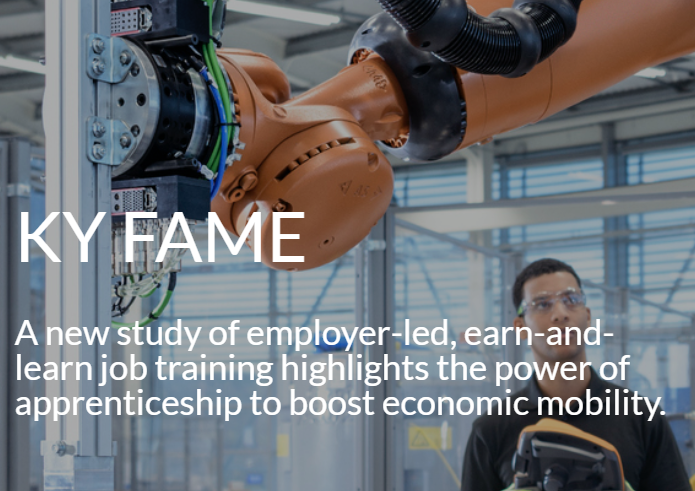 “The Federation for Advanced Manufacturing Education (FAME) is a classic apprenticeship program that combines classroom learning with paid on-the-job experience, teaching skills in demand across an industry. A new report by Opportunity America president Tamar Jacoby and Brookings Institution senior fellow emeritus Ron Haskins draws on focus groups, an online survey and data from the state of Kentucky to shed light on the program and its outcomes for apprentices. Data show that FAME graduates in Kentucky earn between 60 percent and 100 percent more than other career and technical education graduates from the same community colleges. The message for policymakers: earn-and-learn training works, and the nation should redouble its efforts to take the model to scale.”